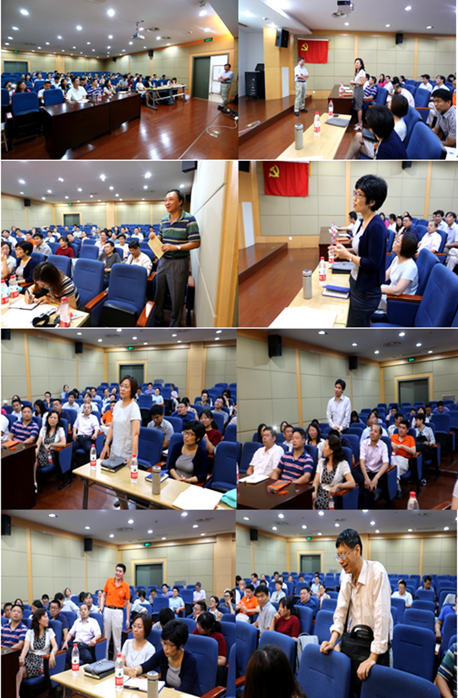 2018年7月5日上午9:00物理与材料科学学院在学院党委的领导下请来了北京大学乐鱼在线(中国)刘玉鑫教授于物理楼226和学院专任教师一起,结合北大的本科人才培养模式,进行一场“北京大学物理学科关于人才培养的思考与实践”的大讨论。山东师范大学物理系主任孟庆田教授、物理专业负责人高守宝副教授、光电专业负责人滕树云教授、赵珂教授;华东师范大学教务处谭红岩副处长、信息与材料科学学院教学院长石艳玲教授、生命科学学院江文正教授、化学与分子工程学院李艳艳老师;物理与材料科学学院党委书记李恺教授、教学院长周先荣教授及五十多位专任教师出席了本次讨论。