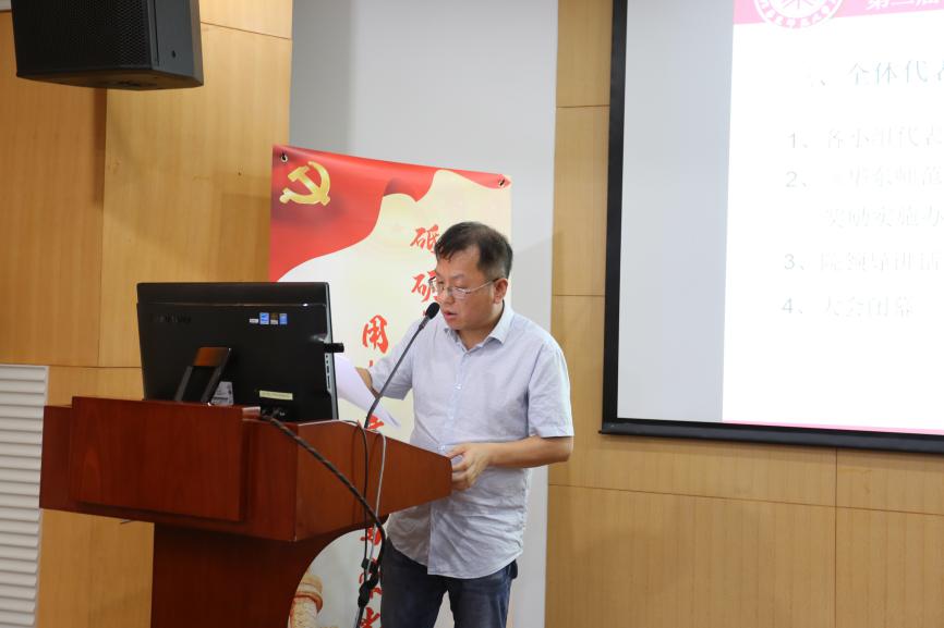 李恺书记对实施办法中的绩效奖励相关问题以及学院高级专业技术职务任职资格与基本条件方案修订作了补充说明。她就学校绩效奖励工作和黄皮书修订工作的安排和要求为与会代表做了详细解读,同时向与会代表透露学校对学院的最新动向安排。李书记代表学院向在假期高温期间积极参加学院教代会的代表表示感谢,感谢各位老师对学院工作的大力支持。