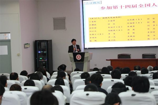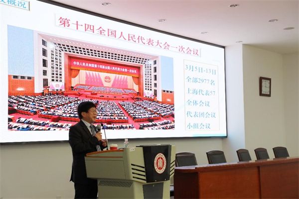 黄勇平教授结合自己参加两会的经历,以“凝心聚力,实现中民族的伟大复兴”为题,围绕会议基本情况、主要审议报告、代表团会议和个人体会等内容,向教职工全面传达全国两会精神。