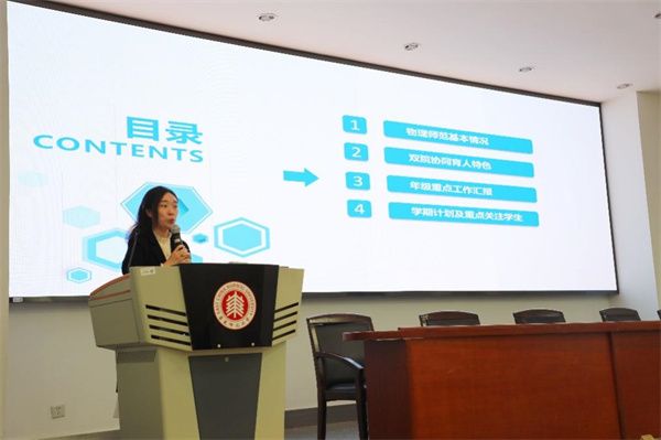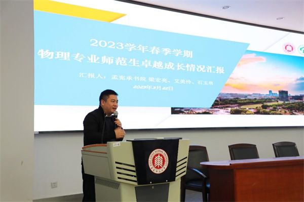 孟宪承书院副院长梁宏亮、辅导员艾美伶从物理师范生基本情况、双院协同育人特色、年级重点工作和学期计划及重点关注学生等方面,详细汇报了2023学年春季学期物理专业师范生卓越养成教育的开展情况。