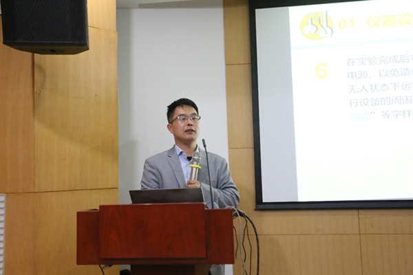 聂耳重点讲解实验室设备安全,他首先简要讲解了实验室常用仪器设备安全须知,着重讲解水热反应釜使用方面的知识,强调水热釜反应的潜在风险和使用注意事项,要求同学们实验时必须要严格按照水热釜SOP进行操作。此外,他还为大家讲解了学校实验室卫生与垃圾分类方面的条例规范。
