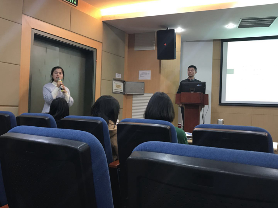 在接下来的提问环节,师兄们也给出了自己的许多建议,为我们提点迷津。另外一位嘉宾杨瑜师姐因为身体欠佳,人虽未到场,也通过word分享了获取资料的渠道,能够让我们更加充分利用资源以充实自己。最后学校研究生会博士分会主席蔚栋敏上台发言,对此次讲坛活动给予及大地肯定与支持。