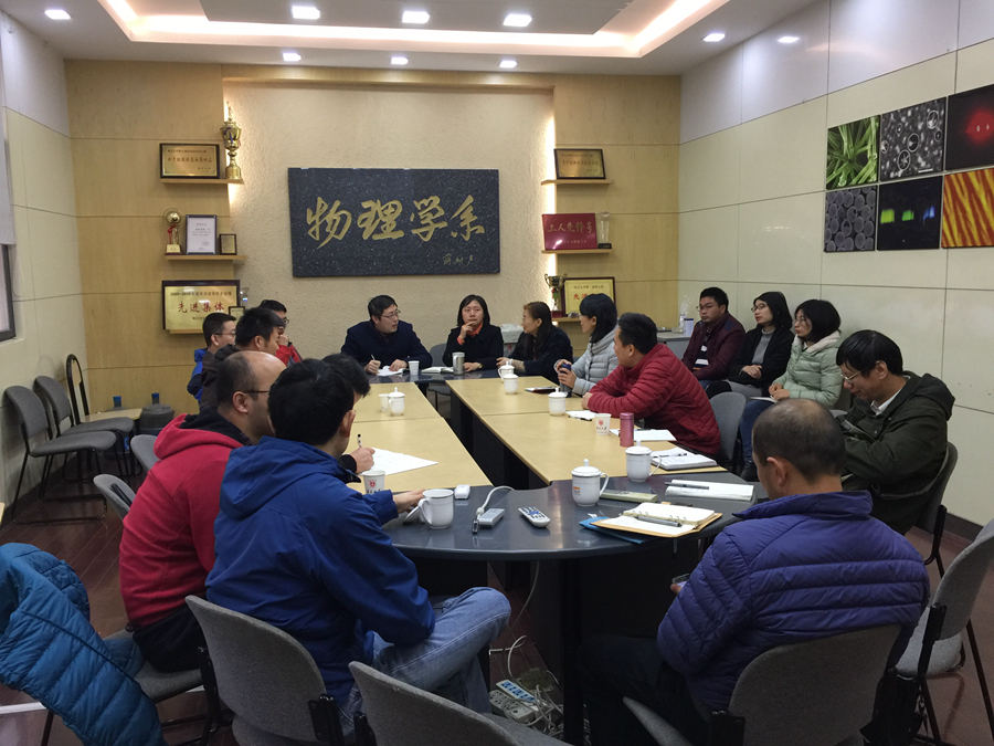 之后,在吴小山院长的邀请和陪同下,我们一行人前往南京大学鼓楼校区访问,与乐鱼在线(中国)院长李建新、副院长吴小山、院党委副书记鞠艳、乐鱼在线(中国)各系的分管领导、大学物理竞赛指导老师、拔尖班班主任、学生辅导员等座谈交流,大家就乐鱼在线(中国)的专业设置、拔尖班学生的选拔机制、本科生科研训练、中国大学生物理学术竞赛等问题进行了深入的讨论,交换了双方的经验,也提出了不少解决问题的新思路。