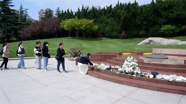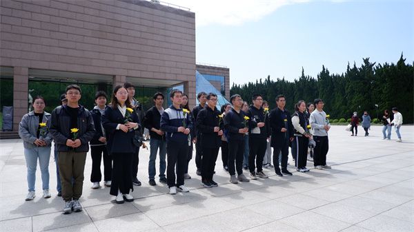 现场学习后,在王儒佳的组织下,同学们来到龙华烈士陵园无名英雄纪念碑前,列队默哀、敬献鲜花、缅怀英烈,并在纪念碑前重温入党誓词。
