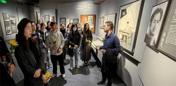 在上海龙华烈士纪念馆,学院党委书记助理、本科生党支部书记王元力,学院团委书记、本科生党支部宣传委员王儒佳带领支部党员、学生骨干开展现场教学。王元力以“从觉醒年代中走过”为主题,结合中国共产党在上海的历史和“五四新文化运动”“中共一大召开”“上海工人三次武装起义”等事件,讲述了陈延年、陈乔年、瞿秋白、赵世炎等革命烈士的生平事迹,阐述了上海对于中国共产党发展壮大的重要意义。王元力谈到,“历史的细节最动人”,电视剧《觉醒年代》中陈延年、陈乔年的回眸令人动容,在党的历史上,有一大批为理想前赴后继、殒身不恤的革命烈士牺牲在上海,长眠于龙华,他们用生命推动近代中国从蒙昧到觉醒,新时代青年应当赓续先烈精神,树立远大志向,脚踏实地奋斗。