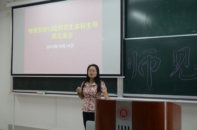 2013年10月14日,在这个深秋之季、风和日丽的中午,物理学系举办2013级物理学师范生本科生导师见面会,物理系精心安排的10名本科生导师悉数到场。本次活动是物理学师范生本科生导师第一次见面会。