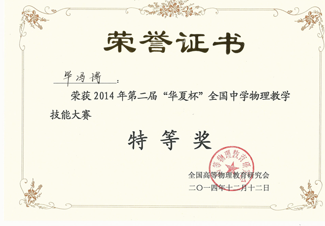 2014年12月10日-12日,由全国高等物理教育研究会举办、西南大学物理科学与技术学院和西南大学科学教育研究中心承办的第二届“华夏杯”教学技能大赛在重庆西南大学举行。来自北师大、华东师大、东北师大、华中师大、华南师大、天津师大、湖南师大、山东师大、新疆师大、内蒙师大、海南师大等31所高校的本科生和研究生,以及来自上海、江苏、广东、福建、广西、内蒙古、新疆等全国21个省市的一线老师两百余人参赛。