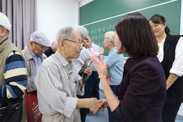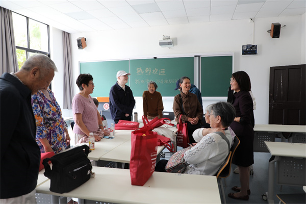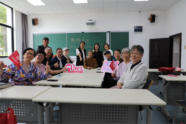 校友日启动仪式后,1964届、1969届、1974届、1977届校友分别在老物理楼和文史楼集中,召开主题班会,重叙当年校园情、同学情。栗蕊蕊参加了他们的班会,对校友返校表示热烈的欢迎。她向校友简要介绍了学院近年来的发展情况。校友们围绕着校园生活及养老生活进行交流,有的校友播放了当年在校时的照片,有的作诗,有的用书法抒情,部分未能到会同学甚至制作了视频短片。一段段珍贵的视频,一张张充满岁月回忆的照片,激起大家对师大求学生活的美好回忆,大家仿佛又回到了难忘的青春岁月。