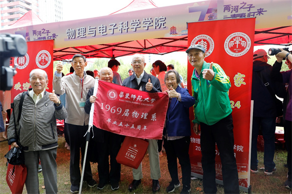 10月13日,“两河之子 青春归来”华东师大2024年校友日返校活动在普陀校区隆重举行,物理与电子科学学院200余名校友欢聚在丽娃河畔,追忆青春、畅想未来。