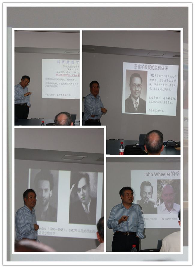 马老师先向大家介绍了物理学家John Wheeler的故事,他是一位活到老,学到老,研究到老的物理学家,而且培养出了物理学奖得主Richard Feynman、Kip Stephen Thorne以及Hugh Everelt lll 等物理学家。在讲到费曼时,马老师引用费曼的话,“我教学的目的,不是为你们参加考试做准备,甚至不是为你们服务于工业或军事做准备,我最想做的是给出对于这个奇妙世界的一些欣赏,以及物理学家看待这个世界的方式。”来表达马老师对于教学的看法。
