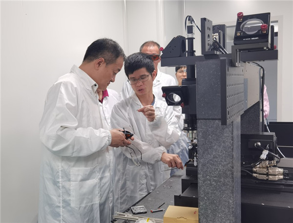学术报告开始前,杜江峰院士参观了学院极端光机电实验室,课题组成员向杜院士介绍了上海市市级科技重大专项“超限制造”核心进展成果,展示了实验室面向化工制药、精密医疗器械等行业自主研发的三维内雕平台、精密旋切加工系统等超快激光加工设备及微纳化工芯片等新型器件。杜院士与课题组成员就超快激光制造原理与应用领域进行了深入交流。