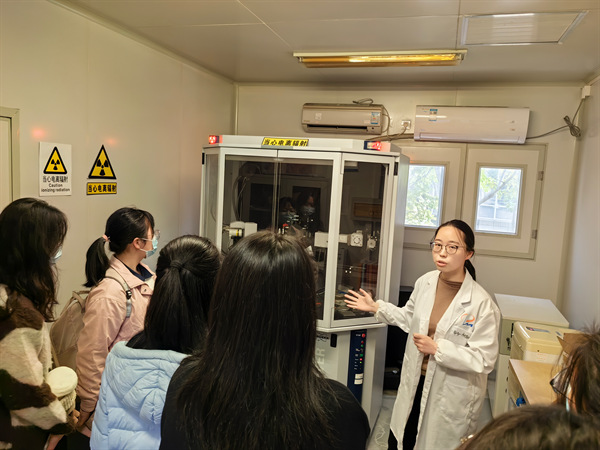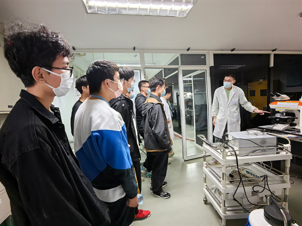 在精密光谱国重实验室党总支副书记马玲,精密光谱国重实验室教工第一党支部书记、教授级高级工程师潘海峰的引导下,2022级物理学专业本科生分批次参观了实验室,潘海峰首先介绍了实验室的基本情况及需要注意的安全事项。同学们分为四组进行参观,在低维结构超快光谱实验室,志愿者详细介绍了实验器械各部分组成和原理;在精密光谱技术实验室,志愿者以探测器在上海宝山钢铁厂的应用、激光在现代医学上的应用等为例,讲解了精密光谱技术的发展现状;徐信业教授课题组的志愿者详细介绍了课题组经过几年努力搭建的超稳光学参考腔系统。志愿者师生同步鼓励本科新生在完成课堂学习的基础上,主动走进实验室,积极参加科研活动、探讨学术问题,尽早确立未来主攻的研究方向。