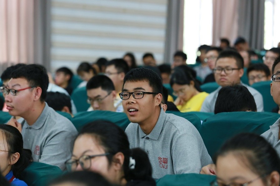本科生新生代表、2019级物理类专业(师范)李成渊在发言中表示,物理学科的性质要求我们去观察世界、探索未知,大到宇宙,小到微观的原子、粒子,希望通过专业学习成长为客观、理性、智慧的人,进而在从事教师职业后更好地了解自己、指引他人。