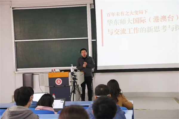 随后,杜震宇作主题报告,分析了百年未有之大变局下,国际形势与国家对教育对外开放的新要求,基于我校国际化及港澳台工作的初心与问题,提出“可持续”“可突破”“可引领”“可反哺”等新思路,阐释了“全校院系大调研”“全球深度合作推进计划”“全校涉外科研平台管理”等新举措。