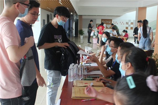 2020年9月12日、13日,物理与电子科学学院迎来了2020级419名新同学。为避免人群大规模聚集,学院精简报到流程,确保每位同学尽可能快速、高效地完成报到手续。